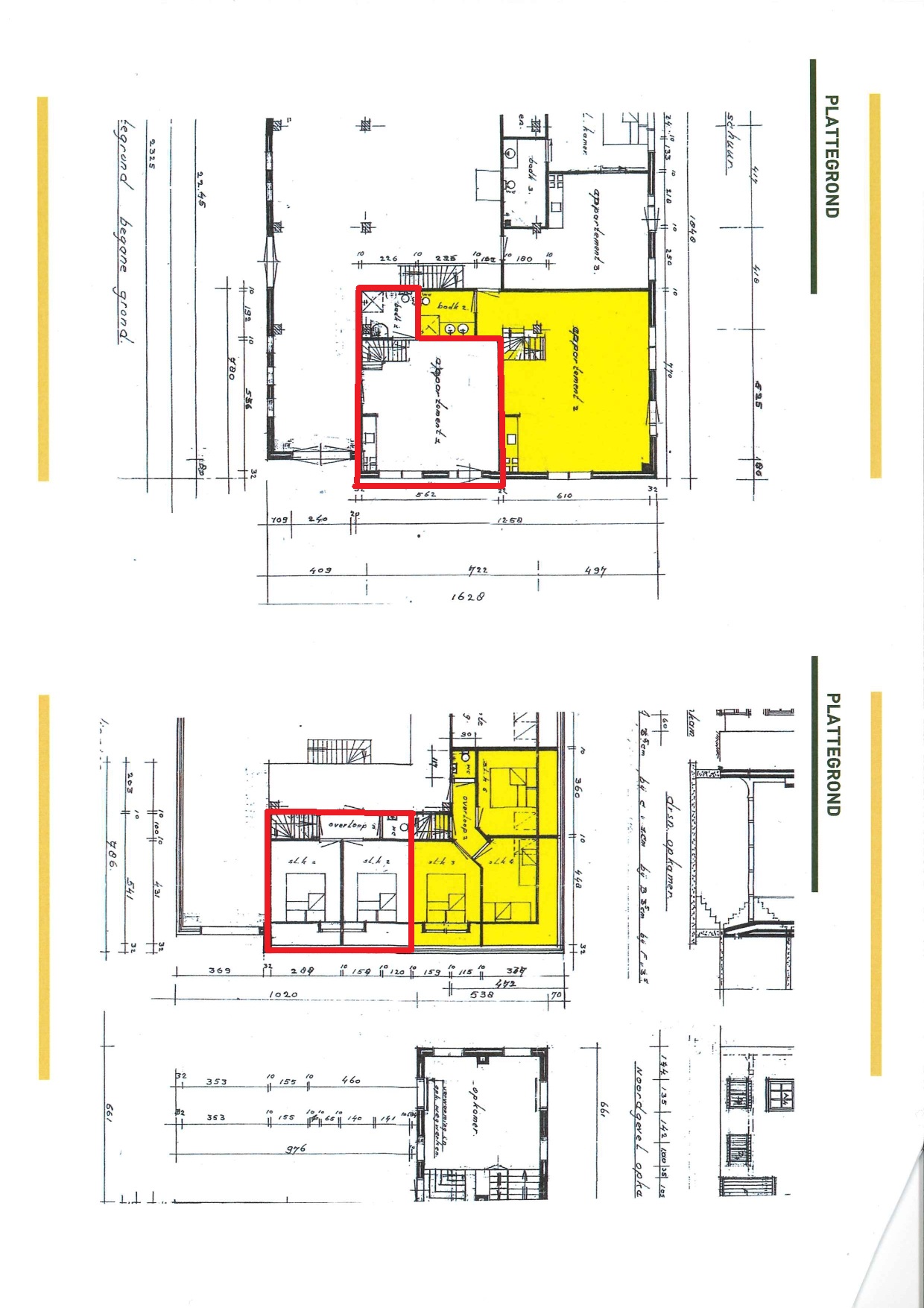 1e Verdieping: overloop, toilet, 2 slaapkamers.
