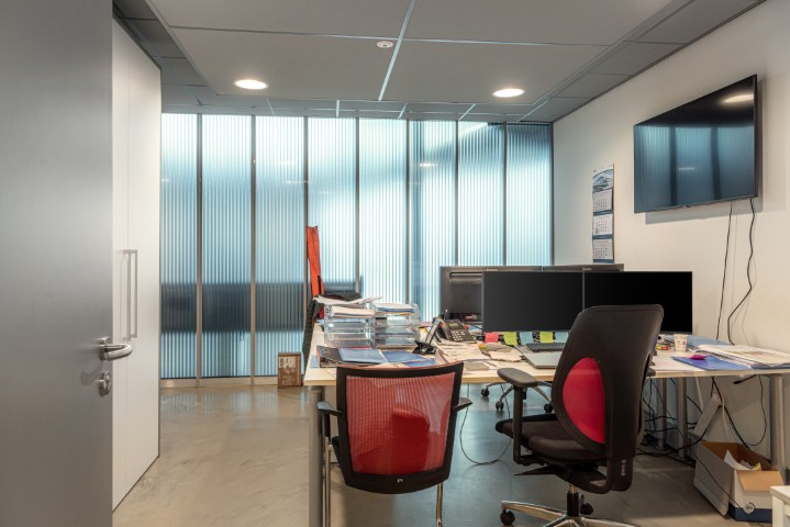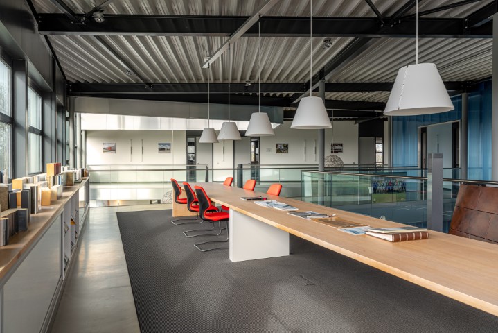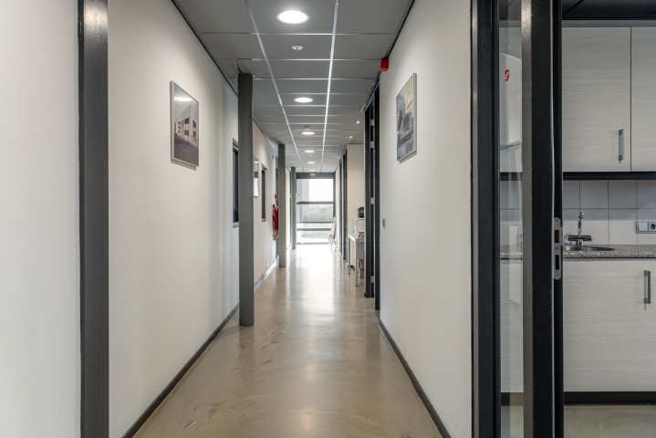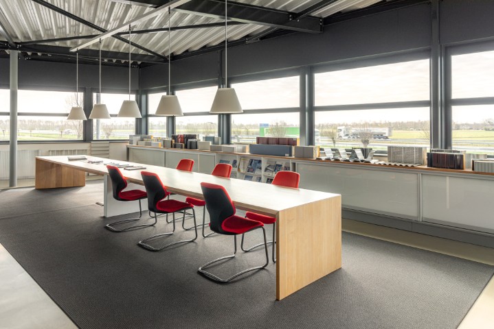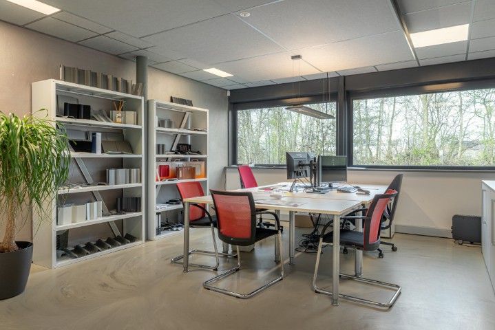Het kantoor- en showroomgedeelte is ruim en representatief opgezet en verdeeld over twee bouwlagen. Op de begane grond bevindt zich circa 550 m² kantoorruimte, bestaande uit een entree via de zijzijde naar de showroom, met negen kantoorruimtes. Tevens zijn er gescheiden dames- en herentoiletten voor bezoekers, een technische ruimte en een separate personeelsruimte met toiletgroep en douchevoorziening.