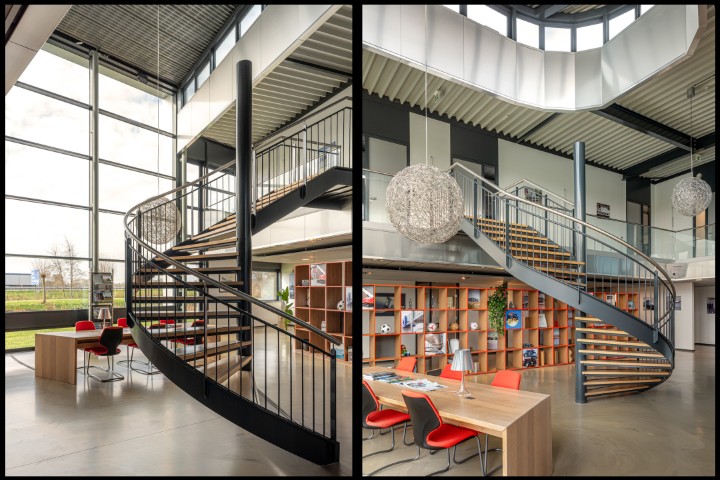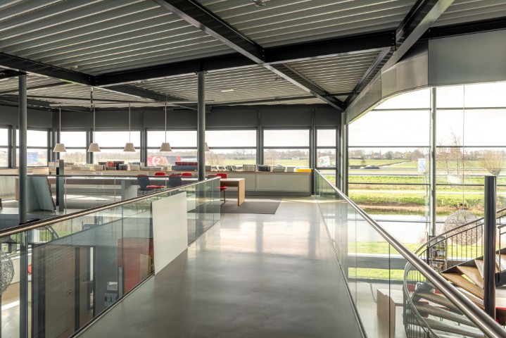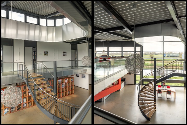 Het betreft een zeer markant en architectonisch opvallend pand dat zich door zijn vormgeving nadrukkelijk onderscheidt in de omgeving en daardoor maximale zichtbaarheid geniet vanaf zowel het bedrijventerrein als de A7.