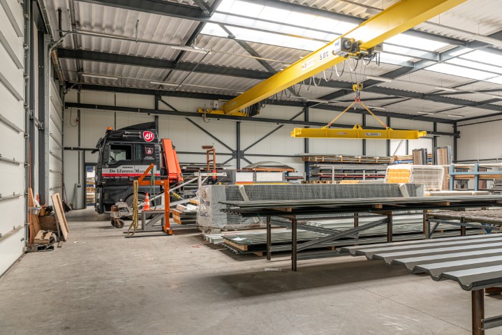 Het object beschikt over een royale en hoogwaardige bedrijfshallen met een totale oppervlakte van circa 2.080 m², bestaande uit een bedrijfshal van circa 1.930 m² en een tweede hal van circa 150 m². De hallen zijn volledig geïsoleerd, voorzien van vloerverwarming en uitgerust met meerdere lichtstraten, wat zorgt voor een prettige en efficiënte werkomgeving. In de bedrijfshal is tevens een bovenloopkraan aanwezig met een hijscapaciteit van 5 ton, wat het object uitermate geschikt maakt voor zwaardere productie- en bedrijfsactiviteiten. De bedrijfshal is voorzien van maar liefst vier overheaddeuren (5 x 5 meter), terwijl de kleinere hal beschikt over één overheaddeur. De gehele bedrijfshal is aan de voorzijde voorzien van een overstek van circa 2,25 meter, wat zorgt voor extra beschutting en een representatieve uitstraling.
