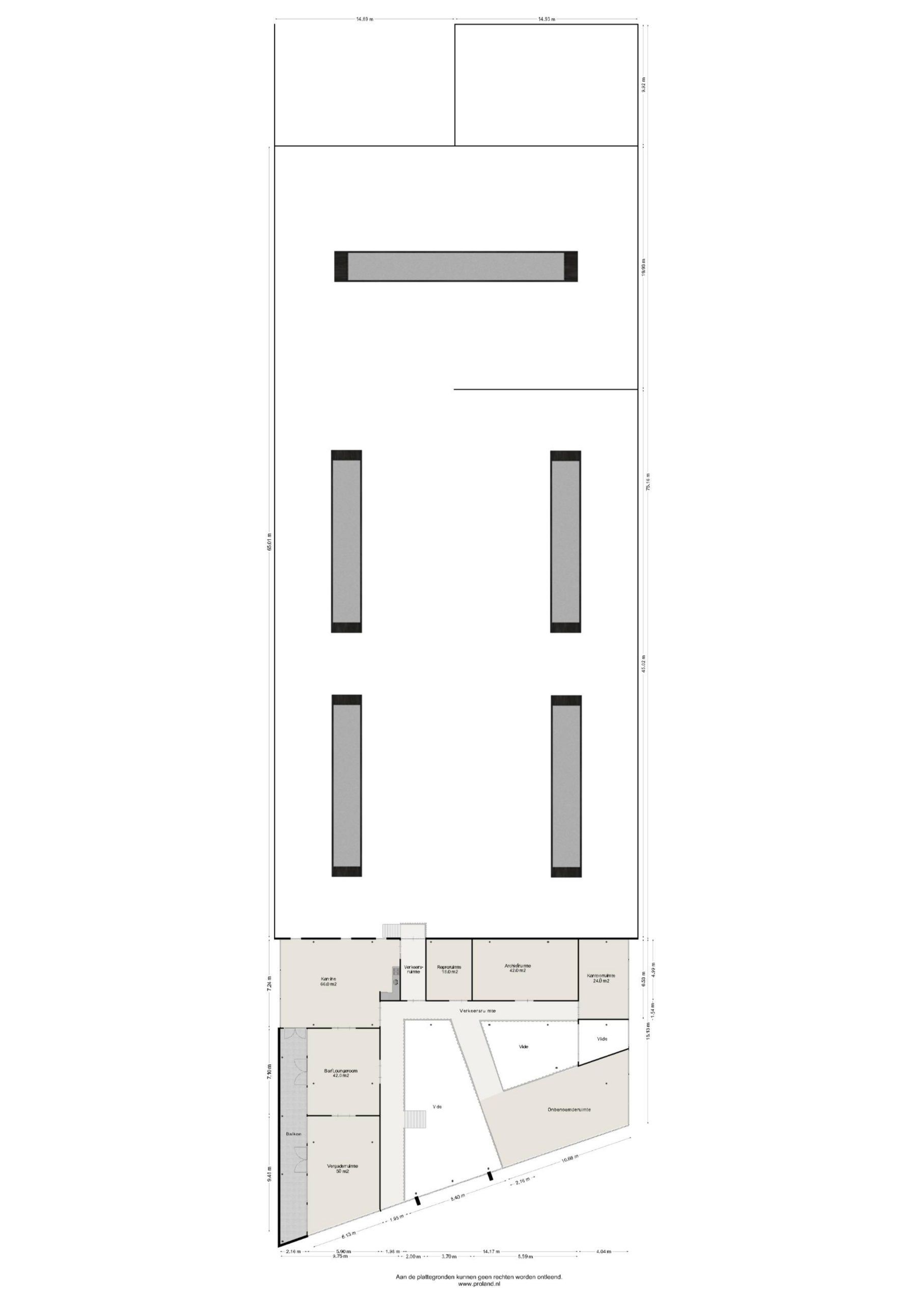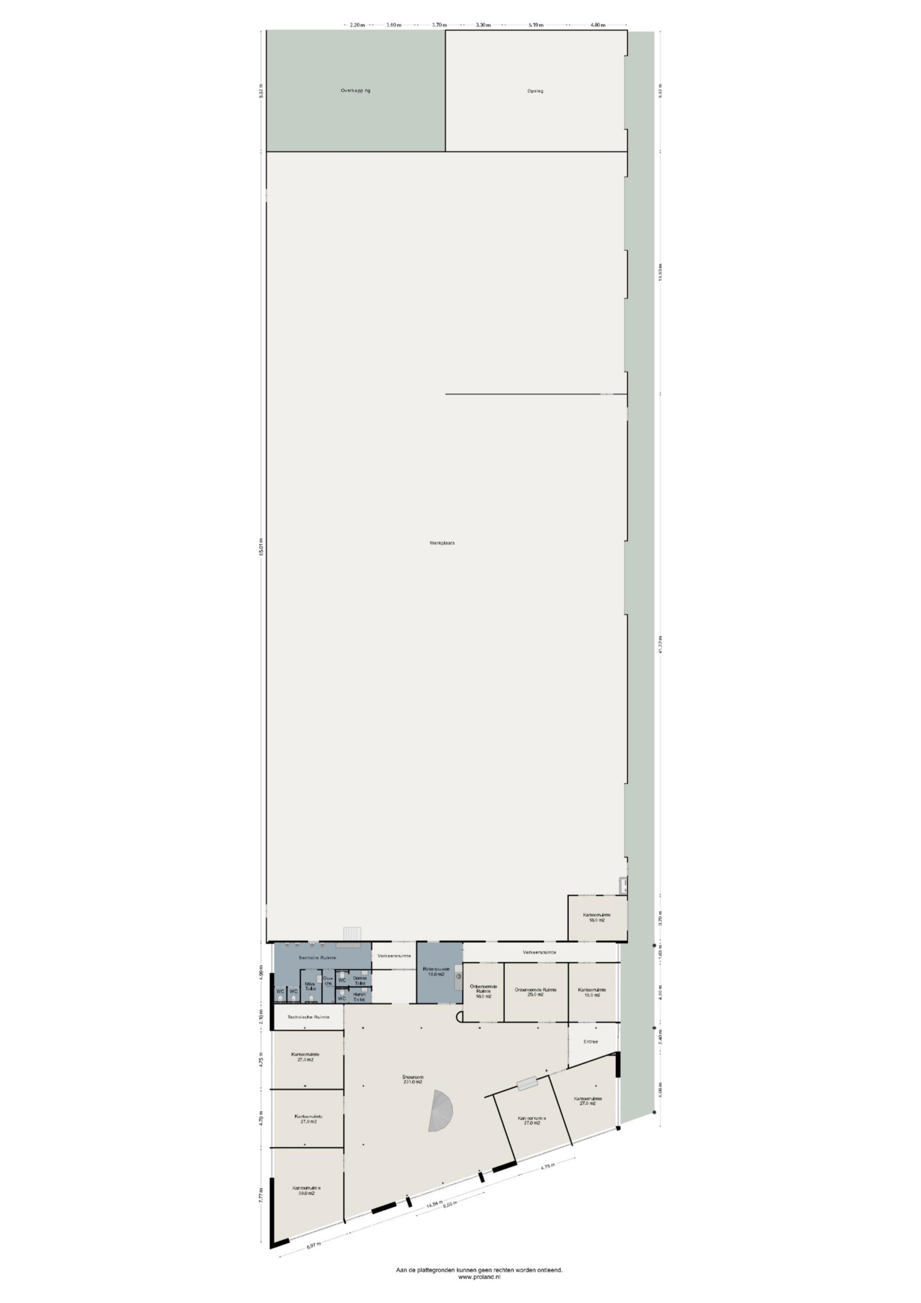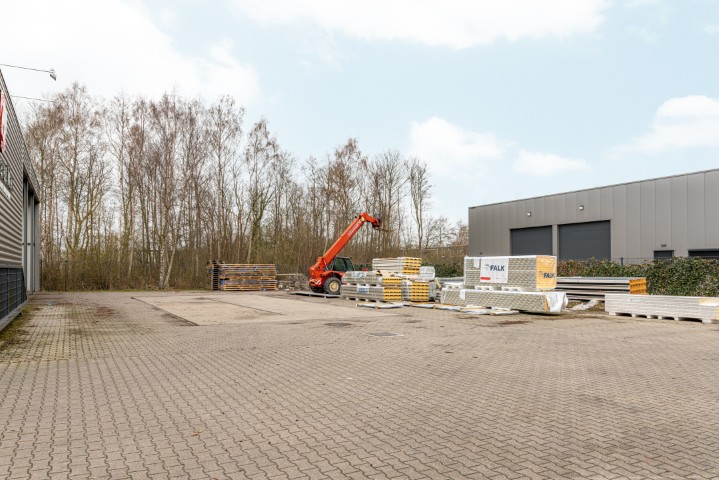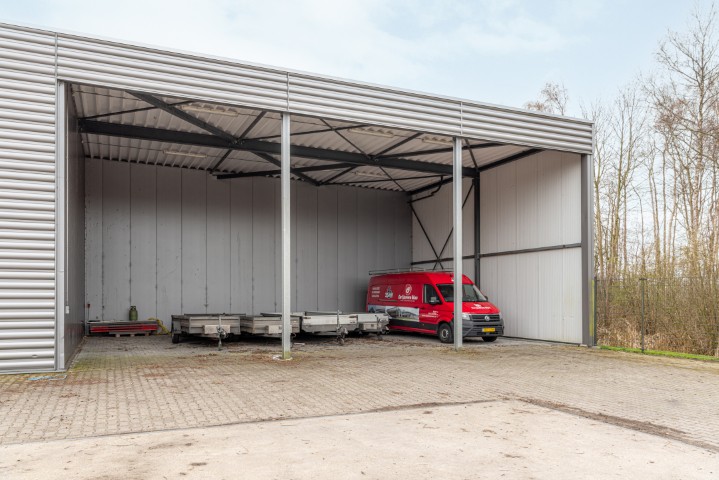 Aangrenzend aan de tweede hal bevindt zich aan de zijkant van het object een praktische overkapping van circa 150 m². Deze grenst direct aan het ruime, volledig omheinde buitenterrein van circa 1.050 m². Deze opzet maakt het geheel bijzonder geschikt voor opslag, logistiek en efficiënt laden en lossen.