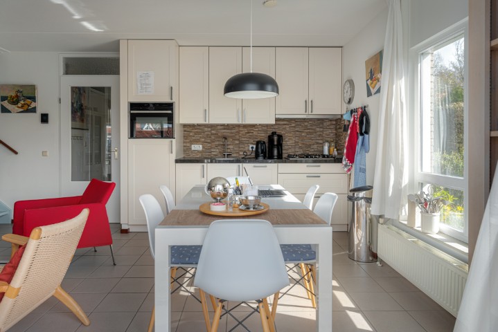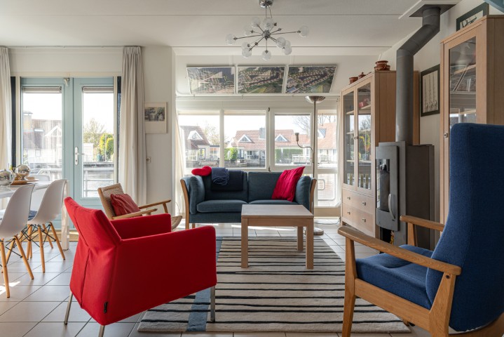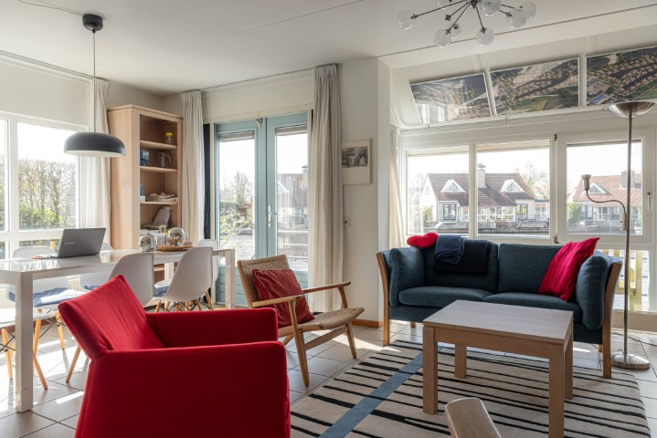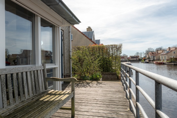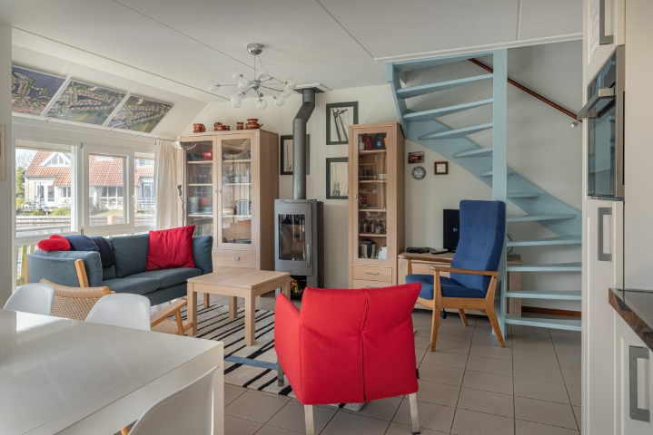 De woning, gebouwd in 1993, beschikt over een lichte en sfeervolle woonkamer met houtkachel, wat zorgt voor extra warmte en gezelligheid. De dubbele terrasdeuren verbinden de woonkamer direct met de tuin en het water, waardoor binnen en buiten naadloos in elkaar overlopen. De open keuken is voorzien van een nette, moderne keukenopstelling en vormt een geheel met de woonkamer en eetkamer, wat zorgt voor een prettige leefruimte. Op de begane grond bevindt zich tevens een slaapkamer en een badkamer met douche en wastafel.