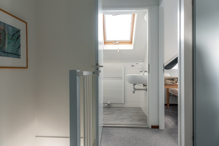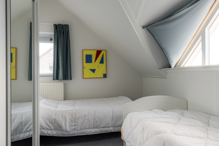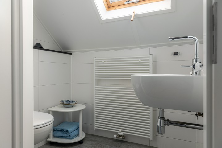 De eerste verdieping is bereikbaar via een vaste trap en beschikt over een overloop, twee functionele slaapkamers (beide met dakkapel) en een tweede toilet met wastafel.