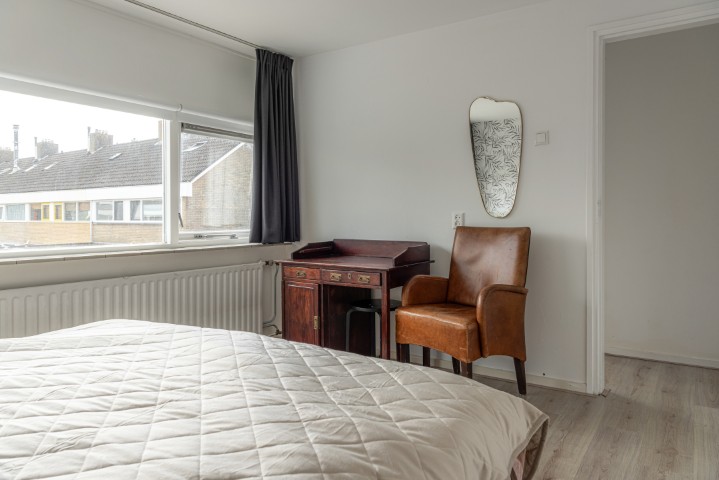 Op de eerste verdieping bevinden zich maar liefst vier slaapkamers, waarvan één met praktische inbouwkasten. De badkamer is netjes uitgevoerd en voorzien van een wastafel, douche en toilet.
