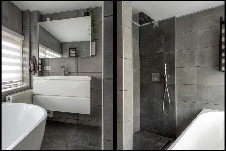 1e Verdieping: overloop met aansluitend 3 slaapkamers allen voorzien van vaste kasten, moderne badkamer met ligbad, inloopdouche, toilet en wastafel met meubel.