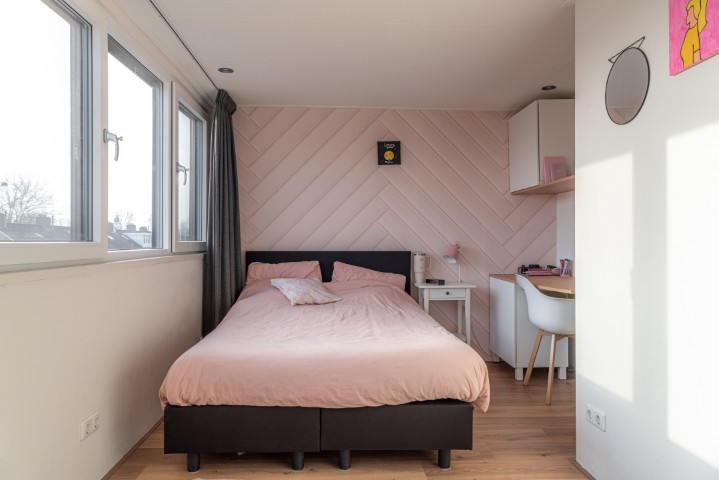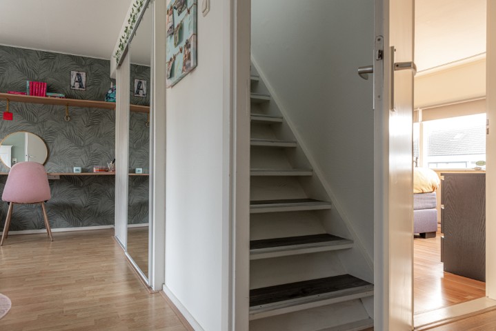 2e Verdieping: vaste trap naar de 2e verdieping met ruime overloop/berging voorzien van dakraam, 4e slaapkamer met dakkapel volledig uitgevoerd in kunststof en voorzien HR++ glas en zonnescreens. Op de zolderverdieping is tevens de opstelling van de C.V. installatie te vinden alsmede het 200 liter zonneboilervat.