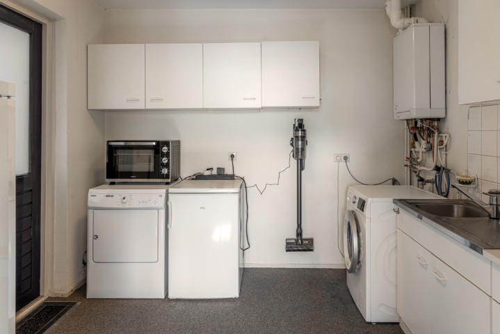 Indeling: entree, hal met meterkast, trapopgang en toilet, riante woonkamer van 49 m² met volop lichtinval, schuifpui naar de tuin en een aparte zithoek welke ook uitermate geschikt is als speelruimte of kantoorruimte of eventueel slaapkamer op de begane grond, dichte keuken voorzien magnetron, koelkast, vaatwasmachine, afzuigkap en inductiekookplaat, bijkeuken met de wasmachine- en drogeropstelling, pantry en toegang naar de oprit.