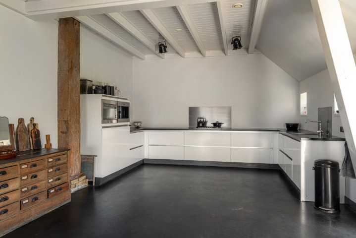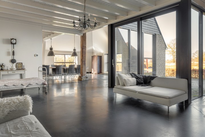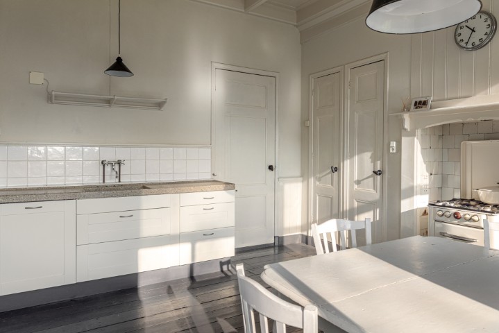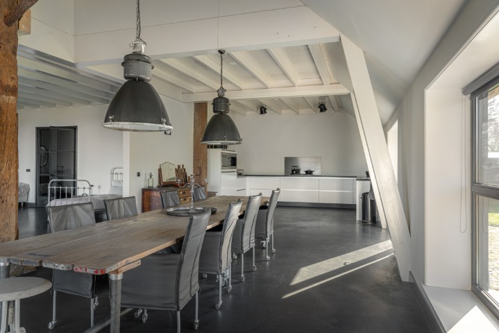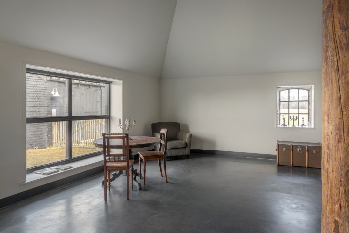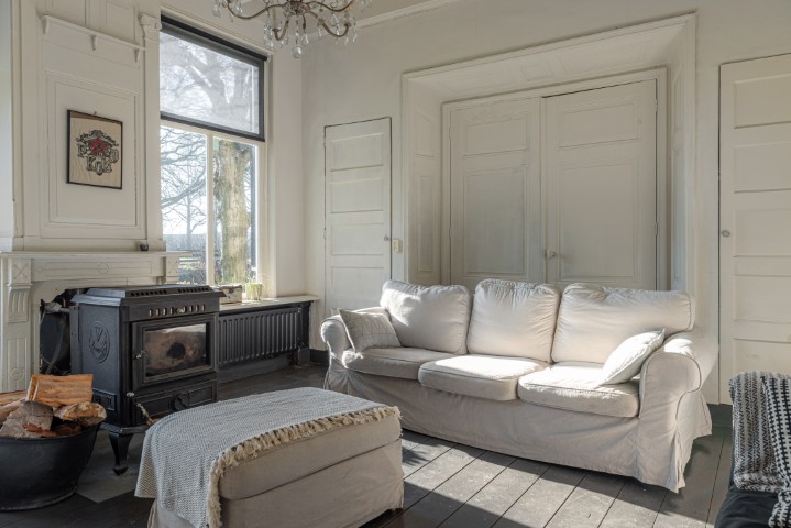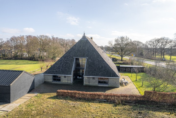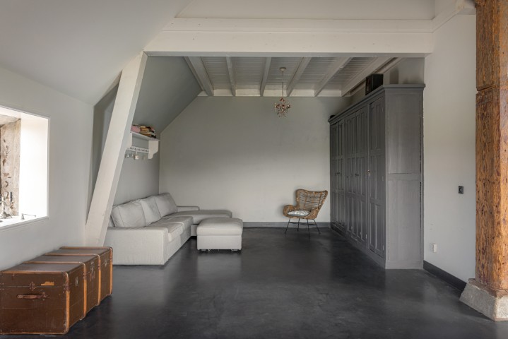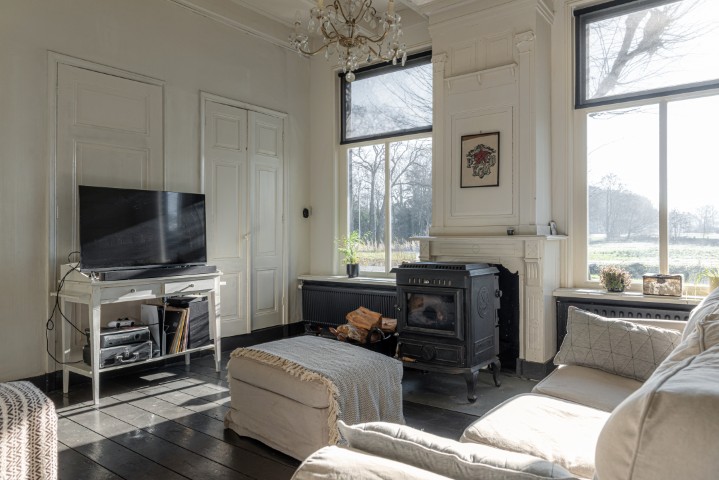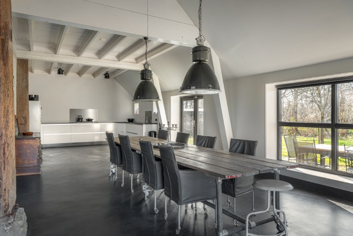 Het woongedeelte in het achterhuis is ruim opgezet en biedt een fijne leefomgeving met veel lichtinval en een prachtig uitzicht over het omliggende landschap. Hier ervaart u rust en privacy, met voldoende ruimte voor een royale zithoek en een sfeervolle eethoek. De praktische indeling maakt het geheel geschikt voor zowel dagelijks gebruik als het ontvangen van gasten.