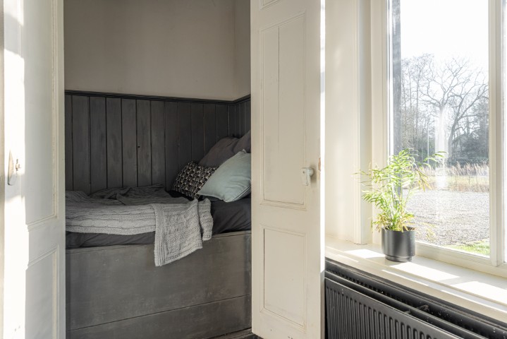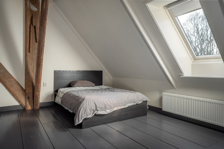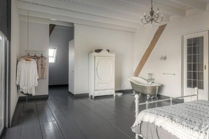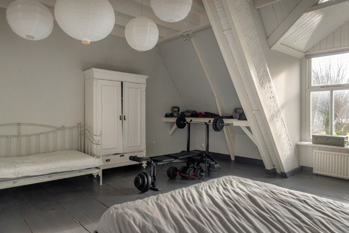 De royale master bedroom op de verdieping vormt een absolute eyecatcher, met een grote inbouwkast en een vrijstaand ligbad op pootjes. Vanuit hier geniet u van een fenomenaal uitzicht over de uitgestrekte Friese landerijen. Een plek waar rust en luxe samenkomen. Daarnaast is er een ruime berging aanwezig.