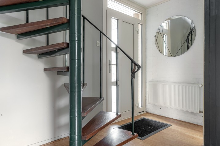 Op de eerste verdieping vindt u de overloop, vier slaapkamers, een balkon, een berging met CV-opstelling en een nette badkamer voorzien van douche, toilet en wastafel.