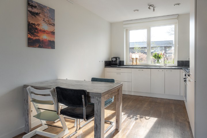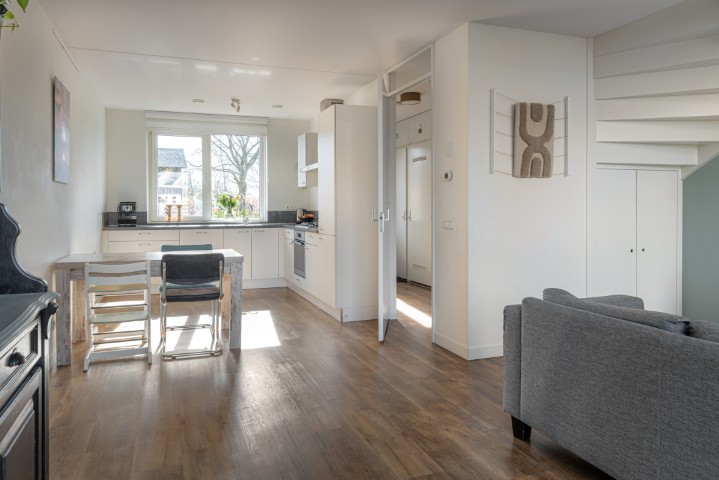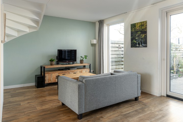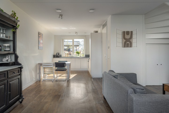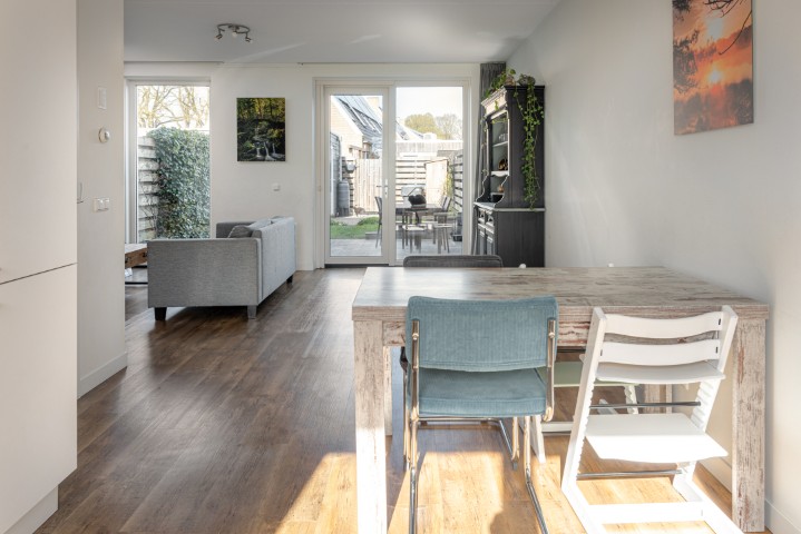 Bij binnenkomst valt direct de prettige lichtinval en de ruime opzet op. De L-vormige woonkamer is tuingericht en voorzien van een openslaande deur naar de achtertuin, waardoor binnen en buiten mooi in elkaar overlopen, ideaal op zonnige dagen.