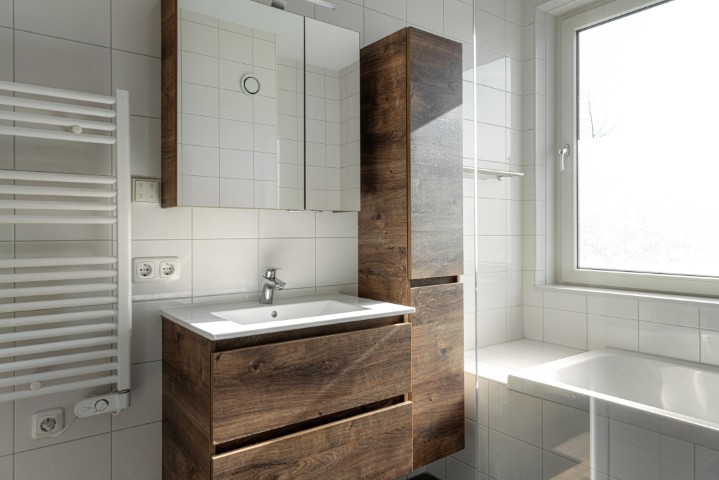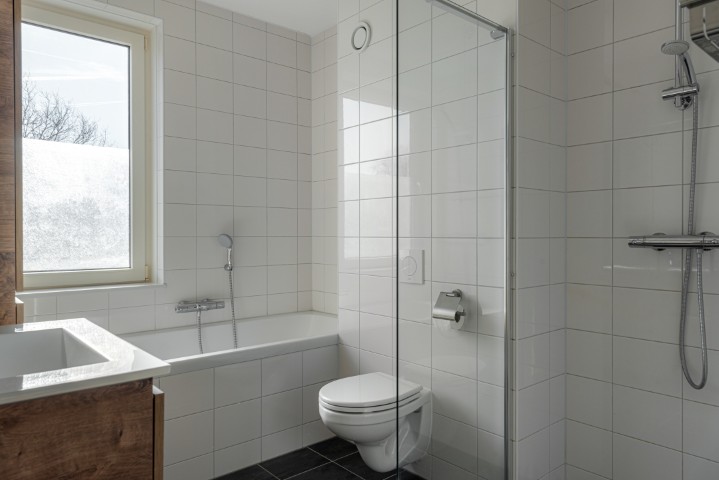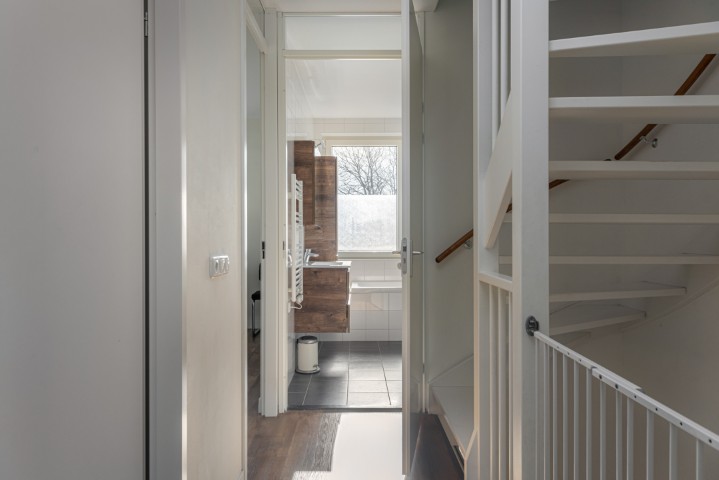 Op de eerste verdieping bevinden zich drie slaapkamers en een complete badkamer met wastafel, ligbad, douche en toilet. De hoge gootlijn zorgt hier voor extra ruimte en een comfortabel gevoel.