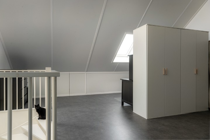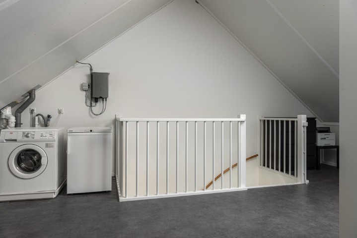 De tweede verdieping is bereikbaar via een vaste trap en biedt een ruime zolderverdieping met aansluiting voor wasmachine en de omvormer van de zonnepanelen. Hier is eenvoudig een vierde slaapkamer te realiseren, ideaal voor groeiende gezinnen of thuiswerkers.