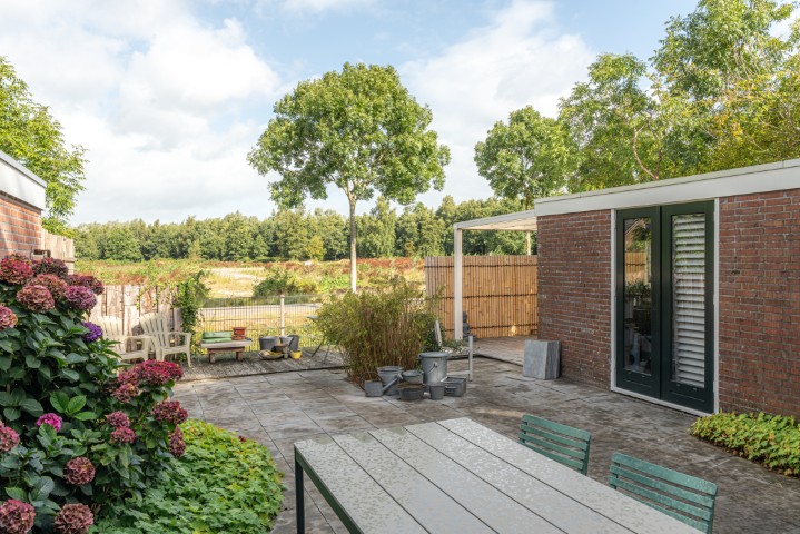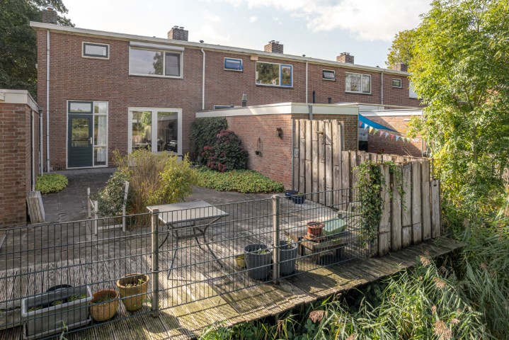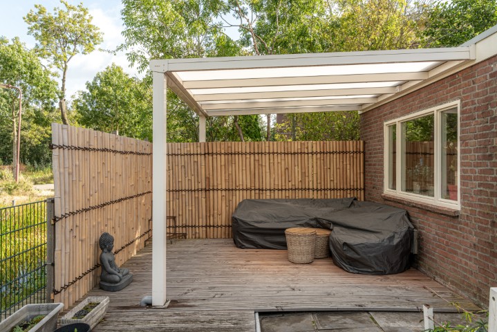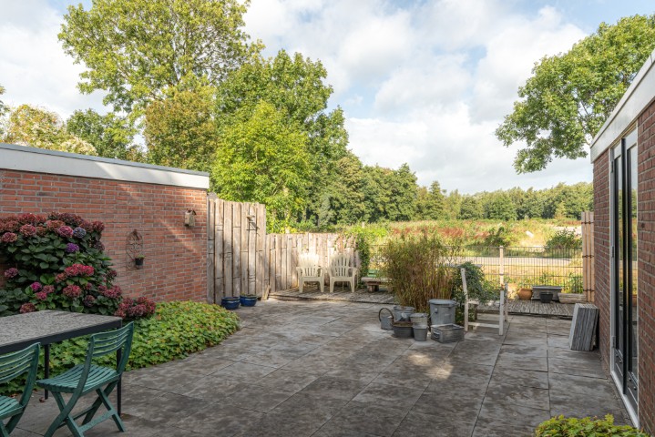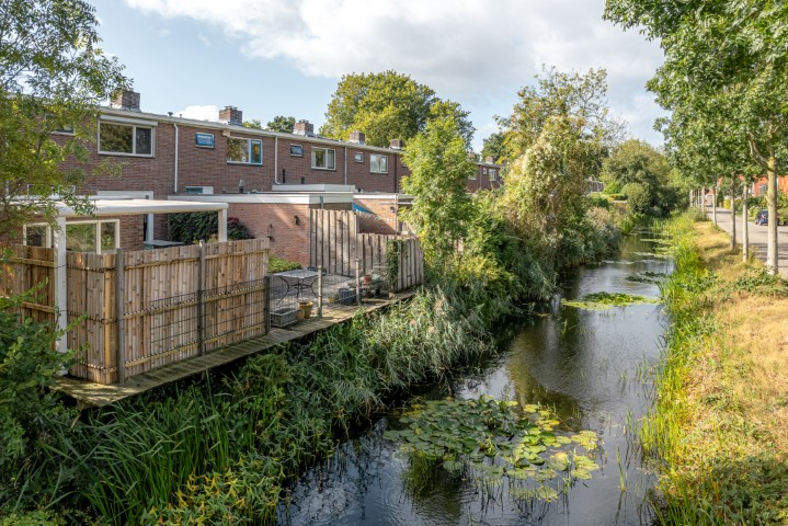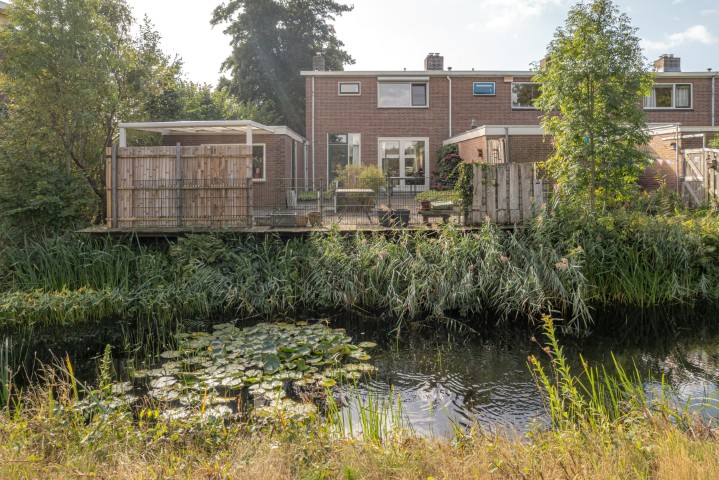 Naast huis is een ruime oprit (minimaal 2 auto’s) met carport aanwezig. Aan de achterkant van de woning bevindt zich de knusse tuin met vlonder aan het water waar je heerlijk kunt zitten. Ook is er een overkapping aan de achterkant van de berging. De berging van circa 14 m² is te bereiken vanuit de carport en via de tuin. Dit is dé plek voor ontspanning of een gezellige barbecue.