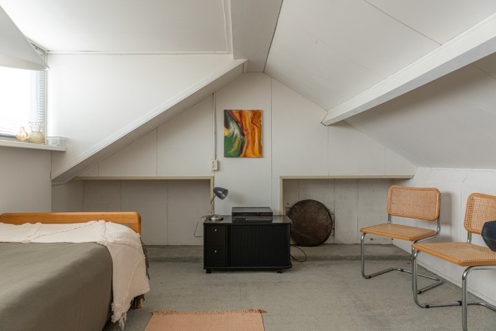 2e Verdieping: vaste trap naar de zolderverdieping met voorzolder, bergruimte de opstelling voor de C.V. installatie en een extra slaapkamer met dakkapel.