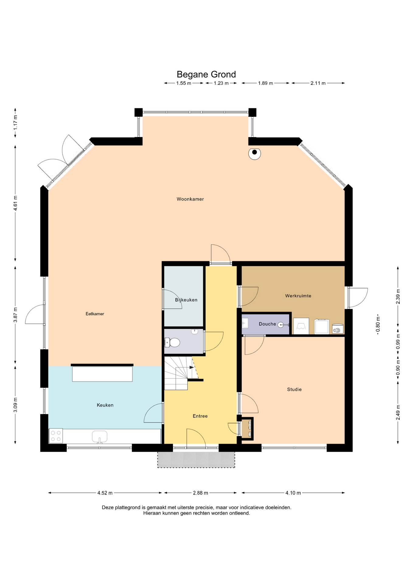 Aan de in deze aanbieding vermelde maten, oppervlakten en overige gegevens kunnen geen rechten worden ontleend. Alle genoemde afmetingen en m² zijn indicatief en dienen uitsluitend ter illustratie. Koper wordt geacht de opgegeven informatie zelf te (laten) verifiëren.