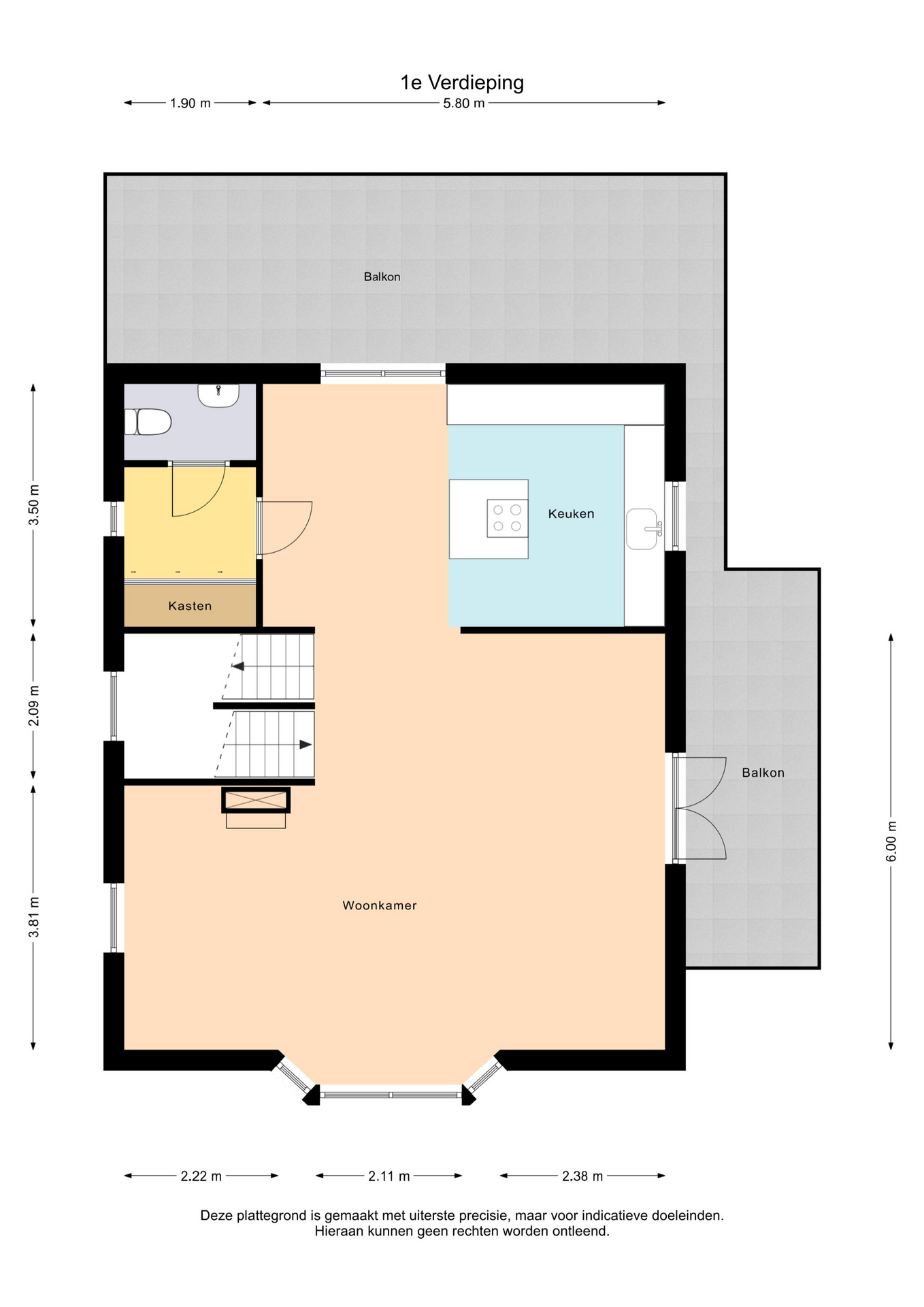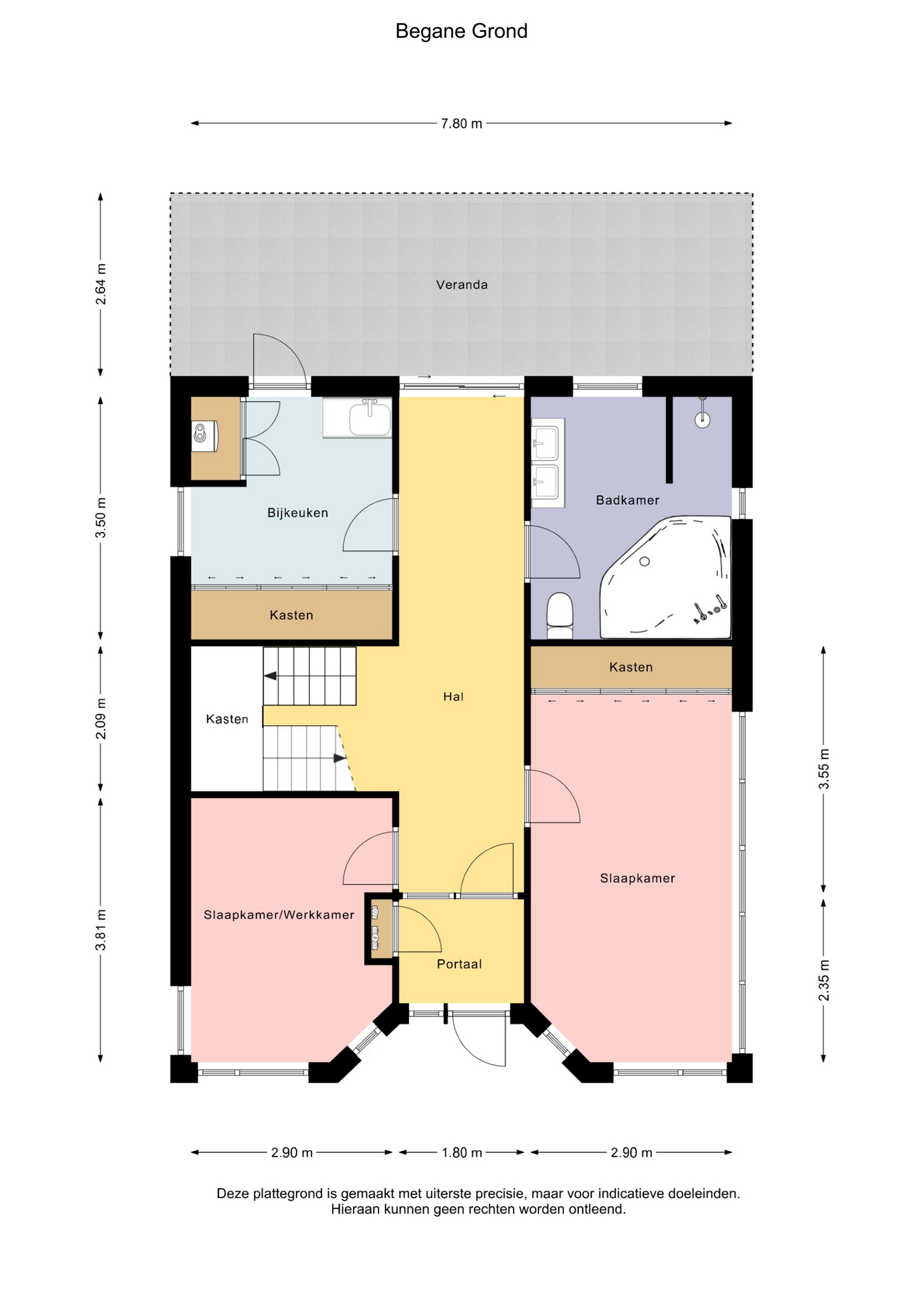 Aan de in deze aanbieding vermelde maten, oppervlakten en overige gegevens kunnen geen rechten worden ontleend. Alle genoemde afmetingen en m² zijn indicatief en dienen uitsluitend ter illustratie. Koper wordt geacht de opgegeven informatie zelf te (laten) verifiëren.