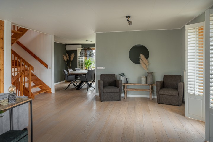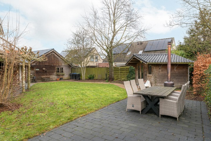 Algemeen: bouwjaar 1993, gebruiksoppervlakte wonen ± 183 m², inhoud ± 658 m³ en perceelgrootte 796 m². De woning is gebouwd in Noorse stijl en helemaal van hout wat een aangename en comfortabele leefomgeving geeft en een hoge isolerende werking heeft. De verwarming gaat via een C.V. installatie die in 2025 vernieuwd is, de ruimtes worden door radiatoren verwarmd. In de woonkamer is een houtkachel aanwezig voor de knusse avondjes. In de woonkamer en één van de slaapkamers op de 2e verdieping is een aircosysteem aanwezig voor zowel koeling als verwarming. Het dak is voorzien van 15 stuks zonnepanelen. De riante tuin heeft een vrijstaande houten garage met elektrische deur en vliering. Tevens is er een tuinhuis in de tuin (± 9,5 m²) en een carport (± 19,5 m²).