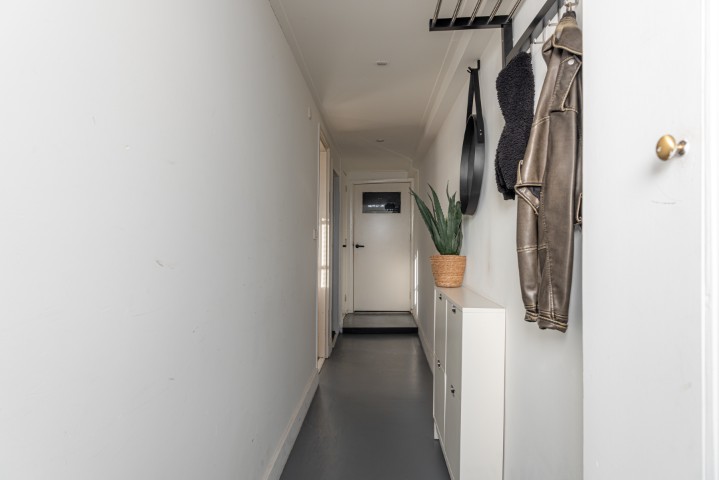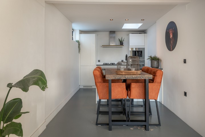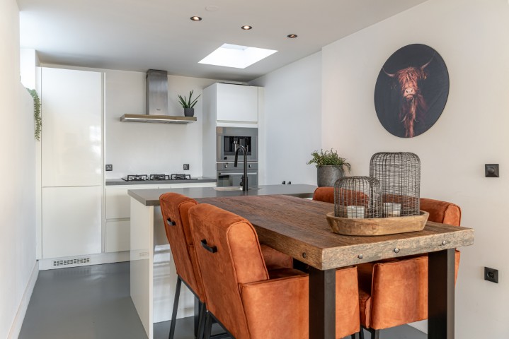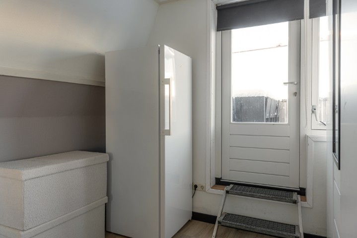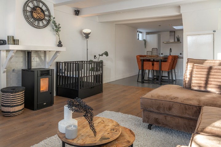 Indeling: entree, hal met meterkast, trapopgang, toilet en toegang naar zowel de woonkamer als de bijkeuken. Knusse en gezellige woonkamer voorzien van pelletkachel en aircosysteem. Aansluitend is de open moderne keuken met koelkast, vriezer, 5 pits gaskookplaat met afzuigkap, oven en een koffiemachine, de bijkeuken heeft een wasmachine-en drogeraansluiting. De CV-ketel is ook gesitueerd in de bijkeuken.