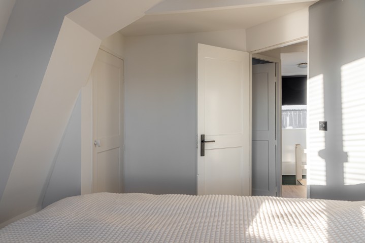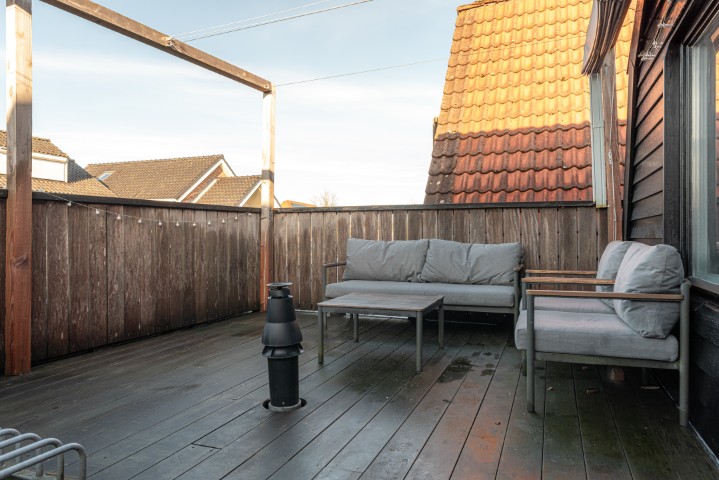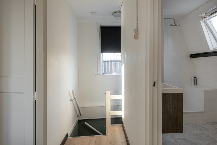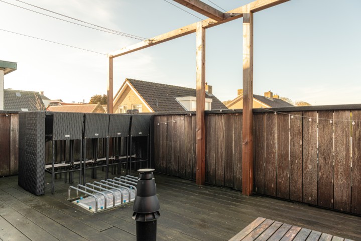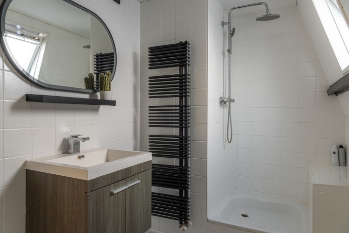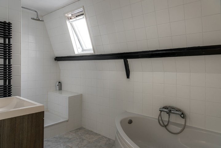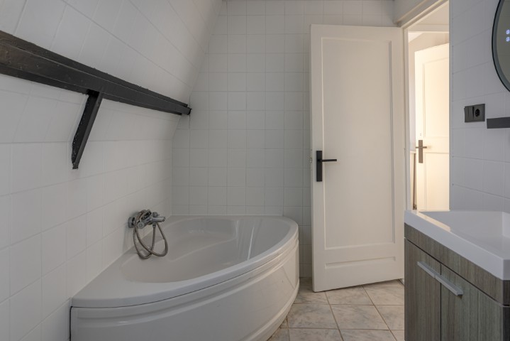 1e Verdieping: overloop, 3 slaapkamers, badkamer met ligbad, douchehoek en wastafel. Vanaf de slaapkamer aan de achterzijde is het ruime dakterras te bereiken waar het heerlijk genieten is van de middag- en avondzon.